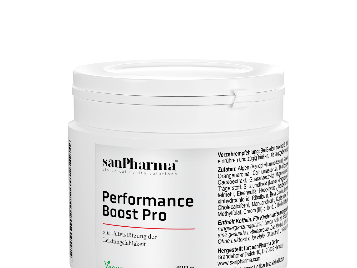 Performance Boost Pro supports mental and athletic performance in a variety of ways. The unique combination of algae, alginates, and cocoa extract acts as an oxygen booster. Performance Boost Pro contributes to the supply of important micronutrients to the body: Vitamins, minerals and trace elements.